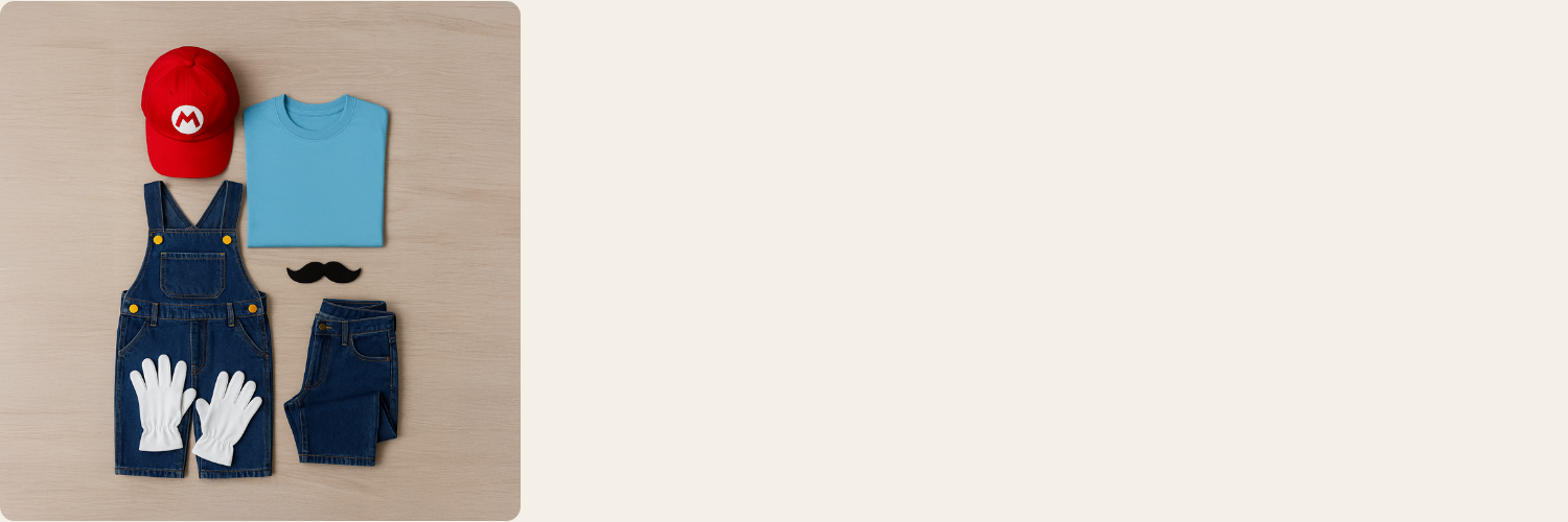 • Blue dungarees or blue shorts with suspenders, red or green tee